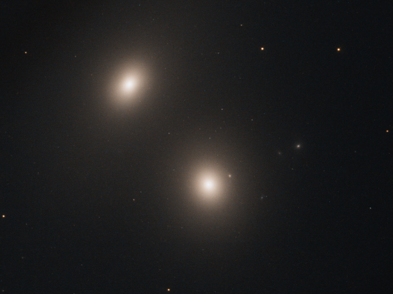 In the constellation Cetus, located about 250 million light-years from Earth, sits the elliptical galaxy NGC 547. This galaxy is the subject of a stunning image the NASA Hubble Space Telescope captured. The photograph reveals NGC 547 shining brightly just below the center of the frame, with its companion galaxy NGC 545 visible near the upper left. Together, these two galaxies are known as Arp 308.