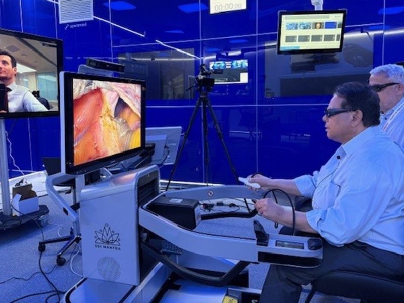 The atrial septal defect closure was done at SAIMS, Indore, with Dr. Srivastava remotely operating the robot from IRCAD, Strasbourg, over 4,000 miles away. The surgery took place during the Society of Robotic Surgery (SRS) Annual Meeting.