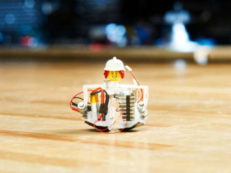 Standing under 1.5 inches tall—about the height of a LEGO minifigure—the world’s smallest self-contained bipedal robot can start on its own, walk over half a mile per hour, turn, skip, and climb small steps using only its built-in battery, actuator, and control system.